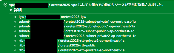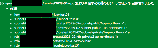 oretest2025-02-igw → igw-test01 - VPC画面から削除を実施。Nameタグを変更したリソースも削除対象として認識されていた。