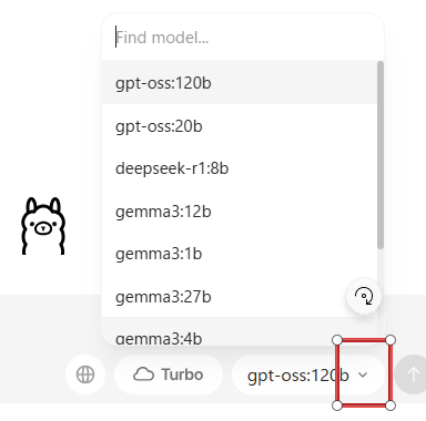 1.画面の右下にあるプルダウンを押すとLLMが複数表示された。選択しているLLMが回答で利用されるLLM。